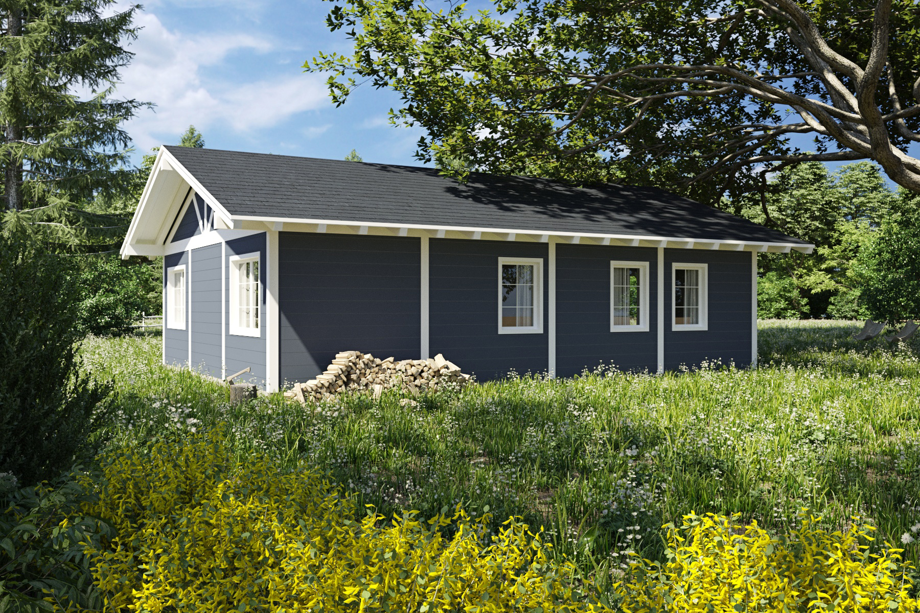 Unsere Wahl von Leimholz-Strukturen garantiert unerschütterliche Haltbarkeit und Zuverlässigkeit, während die isolierten Wandpaneelen ein angenehmes Innenklima unabhängig von der Witterung im Freien aufrechterhalten. Diese kleinen Sommerhäuser dienen als idyllische Zufluchtsorte, ideal für Wochenendausflüge oder sogar dauerhaften Wohnsitz, und bieten die Gelegenheit, die Schönheit der Natur und die Ruhe des Landlebens zu genießen.